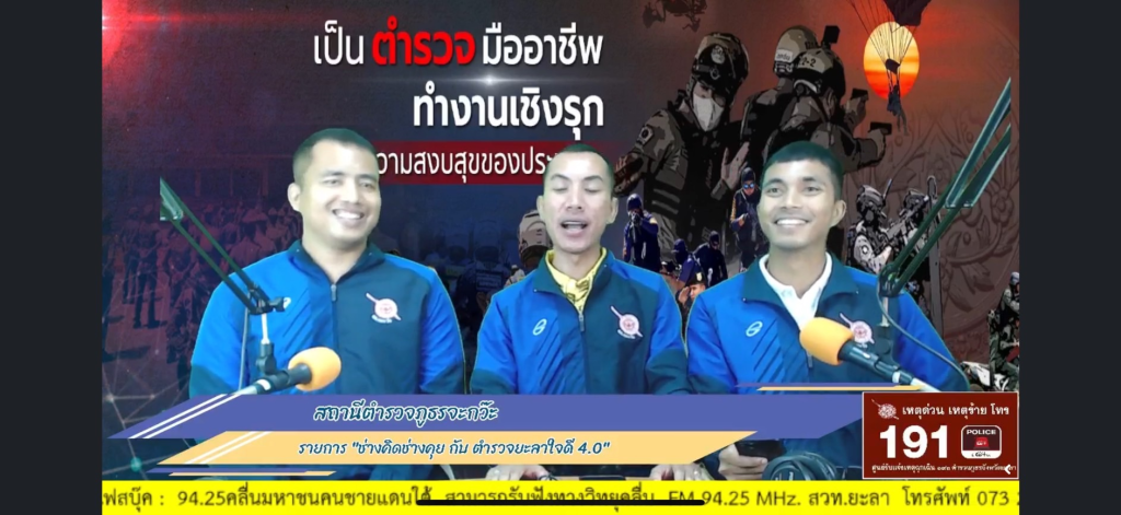 พ.ต.ท.นิพร อินสุวรรณ์ สวญ.สภ.จะกว๊ะ พร้อมด้วยพ.ต.ท.สุรวิชย์ ดาวกระจาย สว.สส.ฯ ปนท.สวป.สภ.จะกว๊ะ,)ฯ ,ร.ต.อ.หญิงบัสตี โตะหม๊ะ รอง สว.ธร.สภ.จะกว๊ะ มอบหมายให้ ส.ต.ท.อนุชา ช่วยรักษ์ ผบ.หมู่(ป.)สภ.จะกว๊ะ,ส.ต.ต.อับบาส เจะกายอ ผบ.หมู่(ป.) สภ.จะกว๊ะ,ส.ต.ต.อัษฎาวุธ อินทร์เอียด ผบ.หมู่(นปพ.) สภ.จะกว๊ะ จัดรายการวิทยุชื่อรายการ “ ช่างคิดช่างช่างคุยกับตำรวจยะลาใจดี 4.0 ” เพื่อประชาสัมพันธ์การทำงานของสถานีตำรวจภูธรจะกว๊ะ และตำรวจภูธรจังหวัดยะลา ให้ความรู้กับผู้ฟังรายการเกี่ยวกับปัญหามิจฉาชีพ การทุจริต การทำสัญญากู้ยืมเงิน และหลักกฏหมายต่างๆ