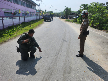 บริเวณหน้า รร.บ้านต้นแซะ ม.2 ต.จะกว๊ะ อ.รามัน จ.ยะลา จึงเข้าตรวจที่เกิดเหตุพร้อมด้วย ชป.อัศวิน และ ข่าย จร. เมื่อเดินทางไปถึงที่เกิดเหตุ พบ รถยนต์ กระบะ ยี่ห้อ ฟอร์ด รุ่น เรนเจอร์ ทะเบียน 1254 ยะลา และ จยย.ยี่ห้อฮอนด้า รุ่น เวฟ 110 หมายเลขทะเบียน กบ 1256 ยะลาจอดอยู่บริเวณที่เกิดเหตุ จึงสอบสวนพยานซึ่งอยู่บริเวณใกล้เคียง พบว่าชุดกู้ภัย ตำบลจะกว๊ะได้นำผู้บาดเจ็บส่ง รพ.รามัน เป็นที่เรียบร้อยแล้ว ร.ต.อ.สิทธิพงค์ ศรีสุขใสฯ ตรวจที่เกิดเหตุเบื้องต้น และเข้าพบผู้บาดเจ็บ รพ.รามัน เพื่อสอบสวนเบื้องต้น