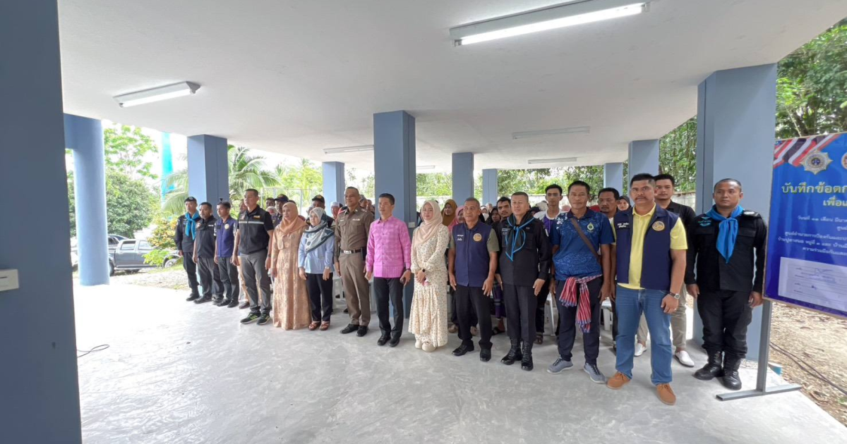 พ.ต.ท.นิพร อินสุวรรณ์ สวญ.สภ.จะกว๊ะ พ.ต.ท.วิรชาติ ย่องหิ้น สว.สส.สภ.จะกว๊ะ ร.ต.อ.หญิง บัสตี โตะหม๊ะ รอง สว.อก.สภ.จะกว๊ะ พร้อม ชุดปฏิบัติการตำบลยั่งยืน สภ.จะกว๊ะ และ ชมส.สภ.จะกว๊ะ