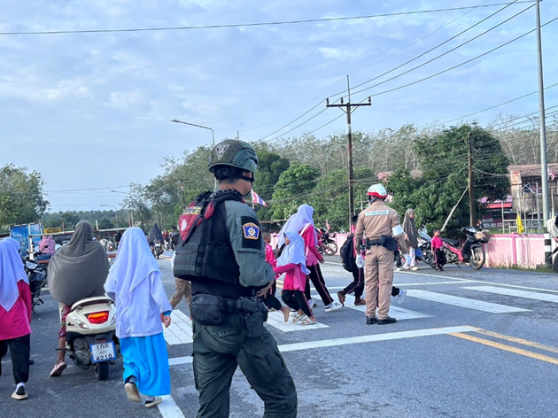 มอบหมายให้ ด.ต.อุสมาน หะยีมิง ผบ.หมู่(ป.) สภ.จะกว๊ะ (ปฏิบัติหน้าที่ ร้อยเวร 20) พร้อมด้วยสายตรวจชุดปฏิบัติการอัศวิน ข่าย จร. ว.4 รปภ. ครู บุคลากรด้านการศึกษา และอำนวยความสะดวกการจราจรแก่นักเรียน ผู้ปกครอง บุคลากรการศึกษา ตามมาตรการรักษาความปลอดภัย ณ โรงเรียนบ้าน ตะโละหะลอ ม.2 ต.ตะโล๊ะหะลอ อ.รามัน จ.ยะลา