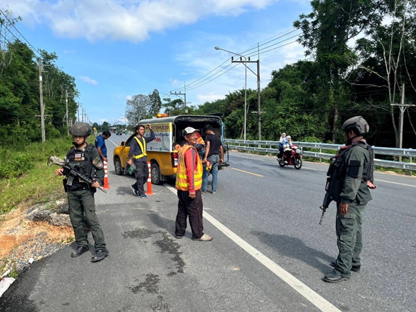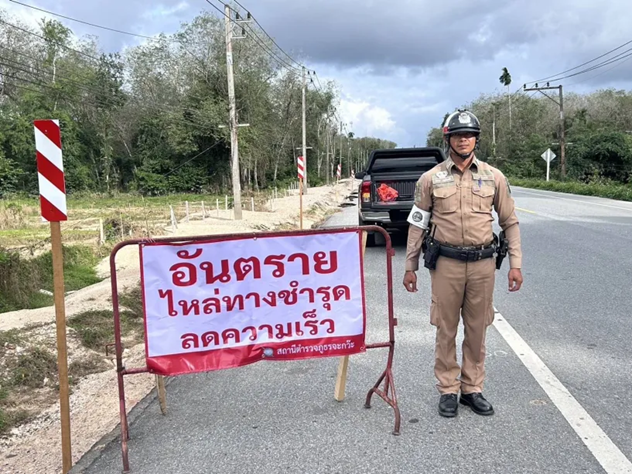 ติดตั้งป้าย – สัญญาณเตือน บริเวณถนนชำรุด สาย 4066
