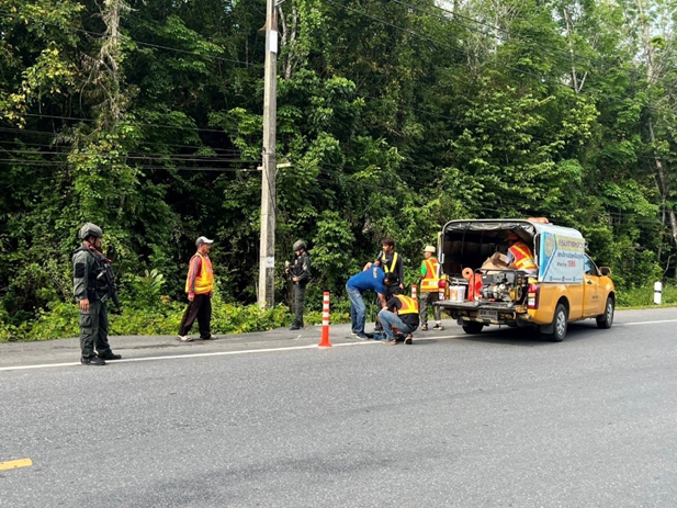 มอบหมายให้ ด.ต.อุสมาน หะยีมิง ผบ.หมู่(ป.) สภ.จะกว๊ะ (ปฏิบัติหน้าที่ ร้อยเวร 20) พร้อมด้วยสายตรวจชุดปฏิบัติการอัศวิน ข่าย จร. ว.4 ร่วมกับ จนท. หมวดการทางรามัน ติดตั้งป้าย – สัญญาณเตือน บริเวณถนนชำรุด สาย 4066 (บ้านทุ่งขมิ้น ) ม.3 ต.ตะโล๊ะหะลอ อ.รามัน จ.ยะลา เพื่อปัองกันอุบัติเหตุห้วงเทศกาลวัน สงกรานต์ 2568 (12-18 เมษายน 2568)